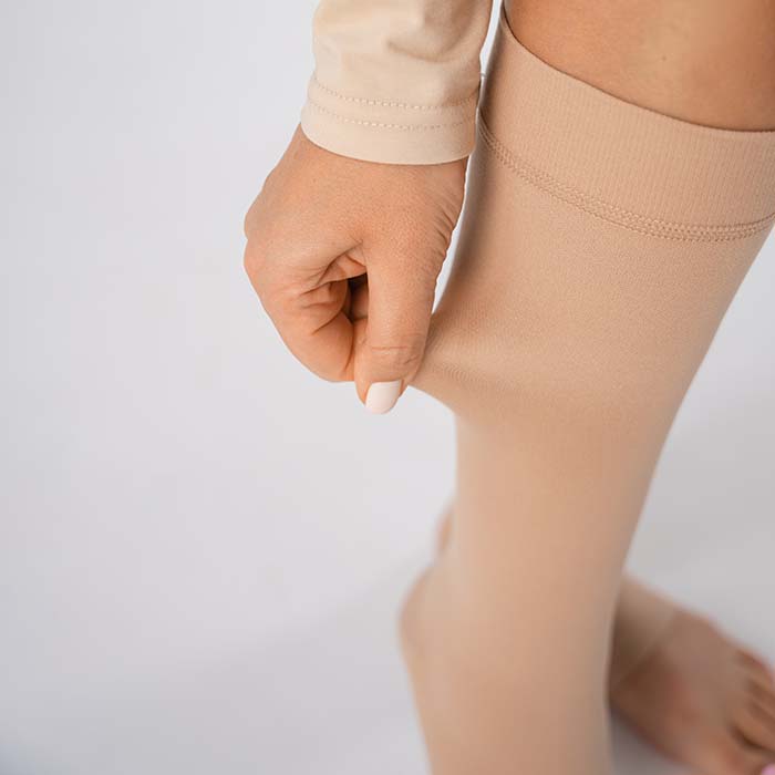 Для облегчения надевания изделия ноги необходимо припудрить тальком или детской присыпкой. Помните, что острые ногти, мозоли, заусенцы на руках и ногах могут повредить изделие. Кольца, браслеты и другие украшения на руках также могут повредить изделие. Рекомендуется надевать изделие в резиновых перчатках. Они уменьшают скольжение кожи рук, позволяя прилагать меньше усилий, быстрее надевать изделие и лучше разглаживать складки.