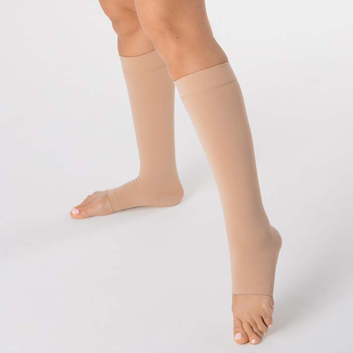 Если стопа не соответствует заявленному нормальному размеру, рекомендуется подбор изделия с открытым носком.